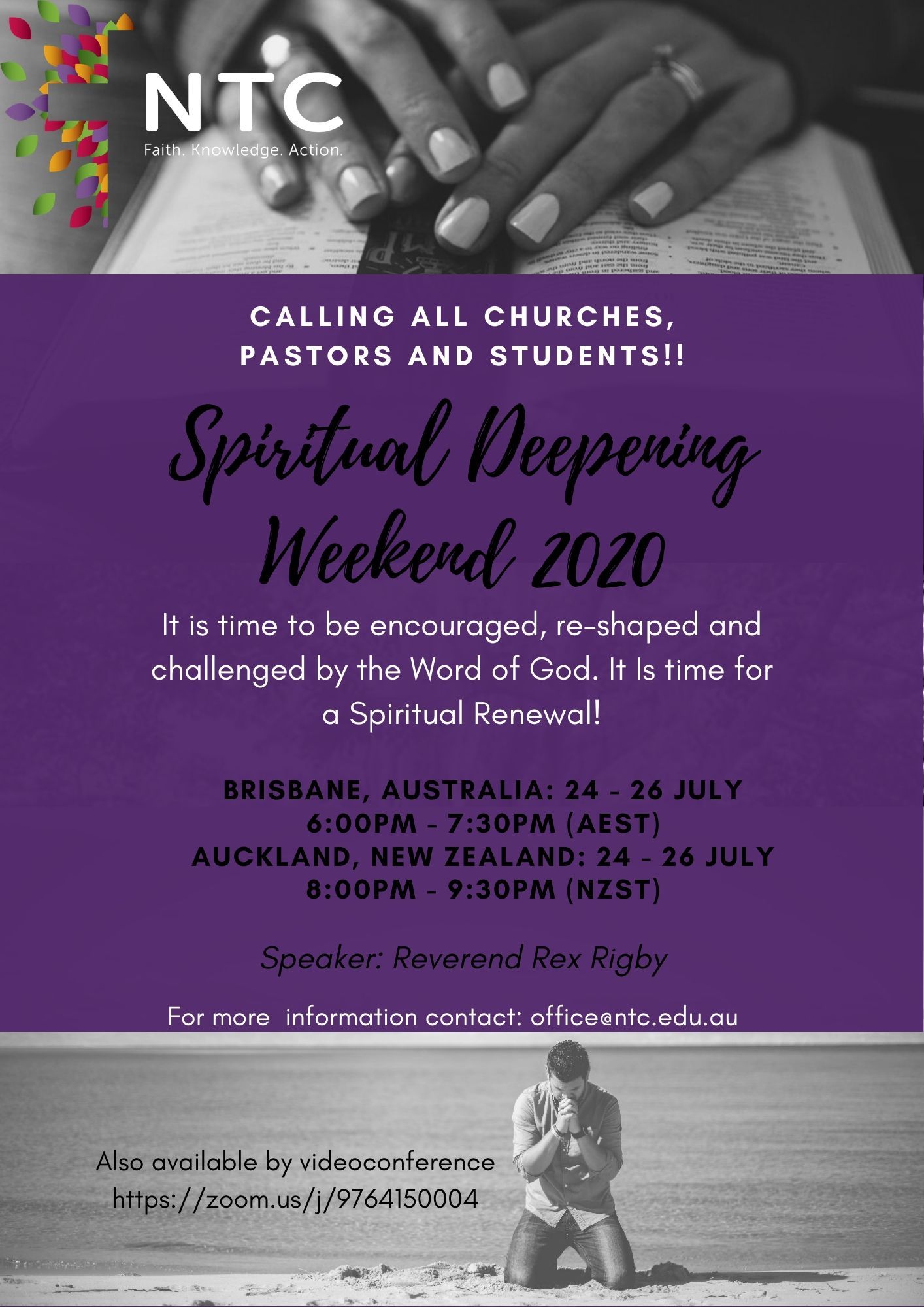 During the last few months of this global pandemic, many of us have faced hardship and challenges that were not expected for 2020. With job losses, economic hardship and isolation we can forget that we are in God's hand. Therefore, NTC is calling all churches, pastors and students to participate in our spiritual deepening weekend so that we can set time apart for God to restore our weary souls.